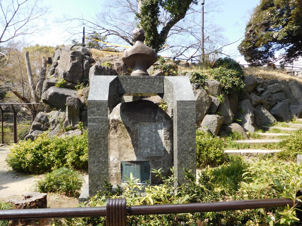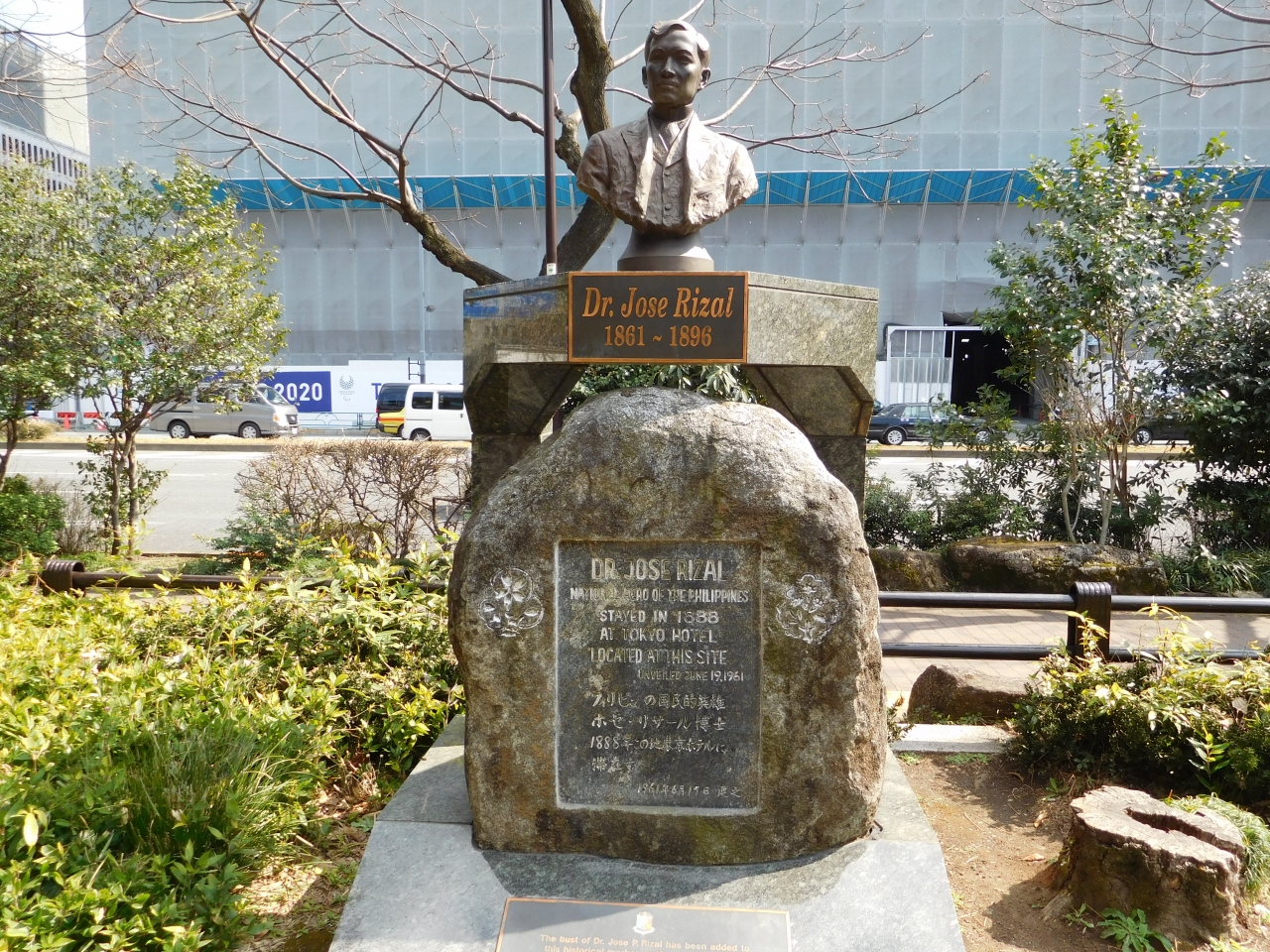日比谷公園側の、日比谷通りの歩道を歩いていた時に、銅像の後ろ姿が見え、「東洋の偉人 ホセ・リサール博士 記念碑」と書かれていたので、気になって、日比谷公園の中に入って見てきました。フィリピンの国民的英雄で、1888年に来日、1ヶ月程東京に滞在したのを記念して建てられた記念碑のようです。心字池の裏側の石垣近くにあるので、なかなか気づきにくい場所にある碑です。