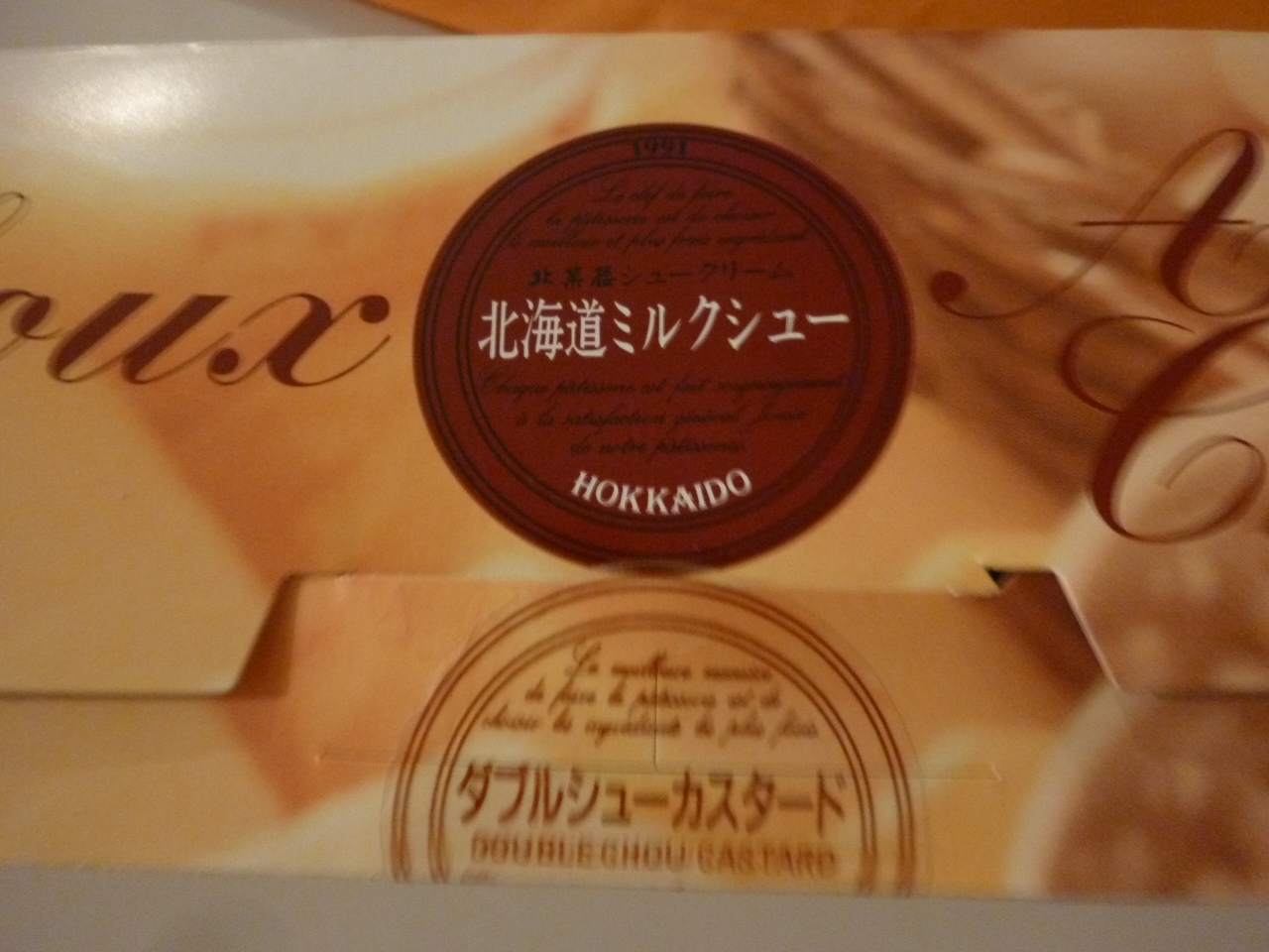 空港ホテルに泊まったので、夕食後のデザートに利用。空港でも、生のシュークリームもあります。普通のカスタードから、チョコや生クリームを組み合わせた物まで、丁度家族で食べるのに良い4個入り。これなら、見送りに来た人も買いやすいですね。保冷剤もくれます。