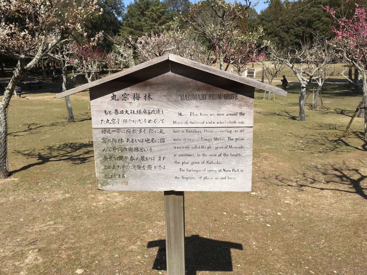春日大社の一の鳥居を過ぎ、右手に丸窓梅園がありました。