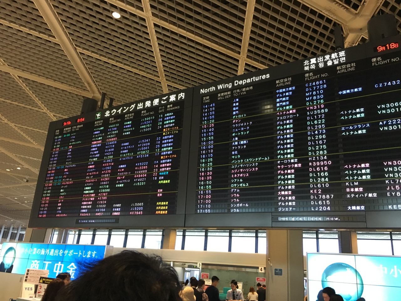 エールフランスの利用でしたので、こちらの第一ターミナルの利用でした。交通機関は銀座から出ている空港バスの利用が便利でした。とても広々とした受付カウンターがあるエリアに来ると海外に出発だなぁと思います。フードコートもとても充実しているので、時間に余裕をもって行っても時間をつぶせます。