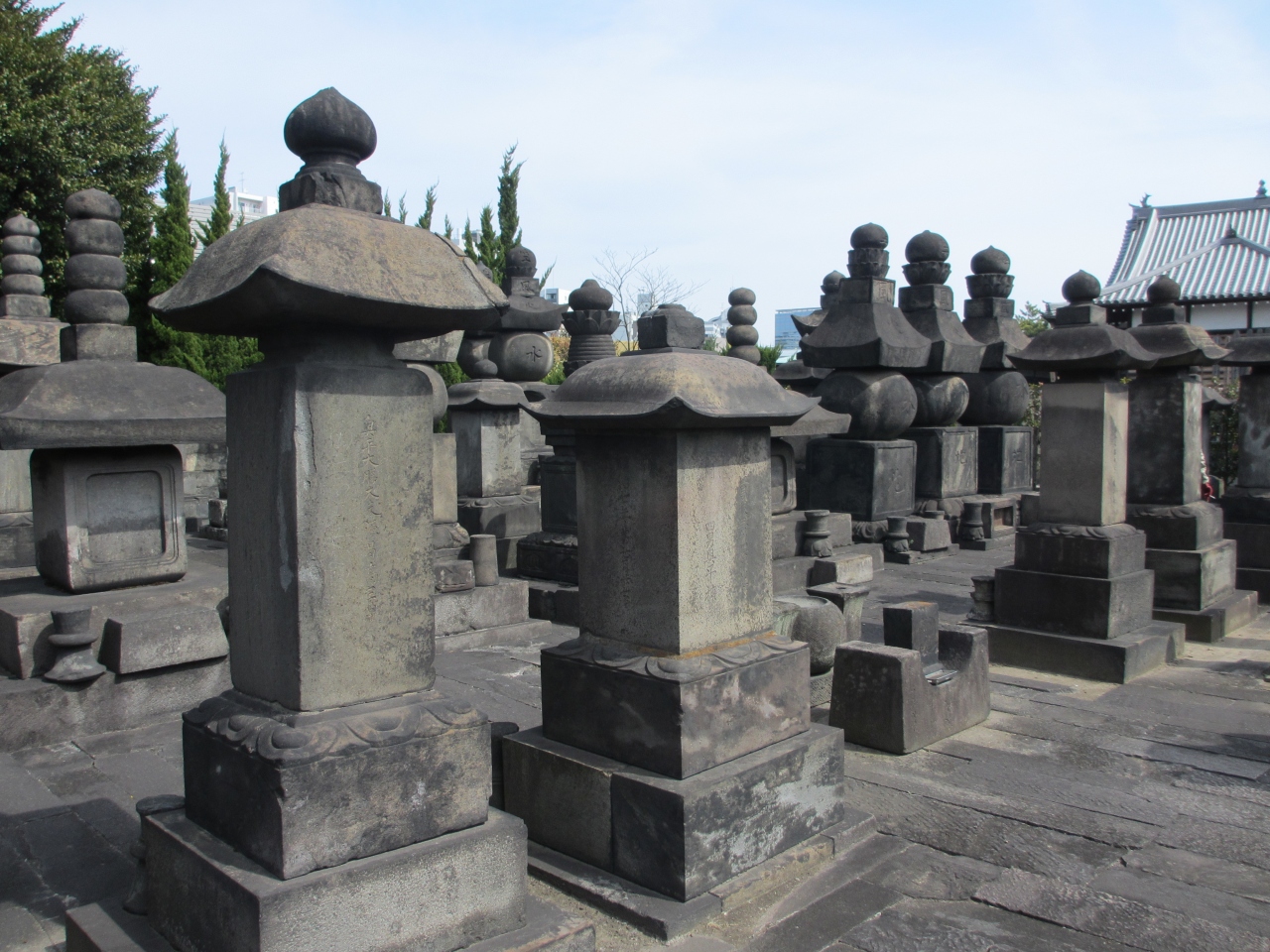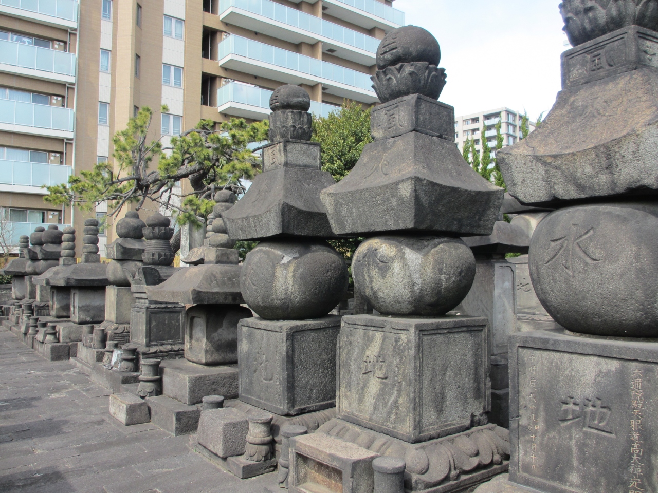 京急・新馬場駅から目黒川沿いを北に5分ほど行ったところに建つ清光院の墓地内にあります。江戸時代の譜代大名だった奥平家歴代の墓域です。周囲は土塀に囲まれ、墓域内には高さ3mを超える石造りの五輪塔を含め、89基の墓碑が並んでいます。その姿は大変壮観で、あたかも古代遺跡の空間にいるような感覚になってしまいました。一見の価値はあるかと思います。旧品川宿に行った際には是非訪れてほしい場所だと思います。