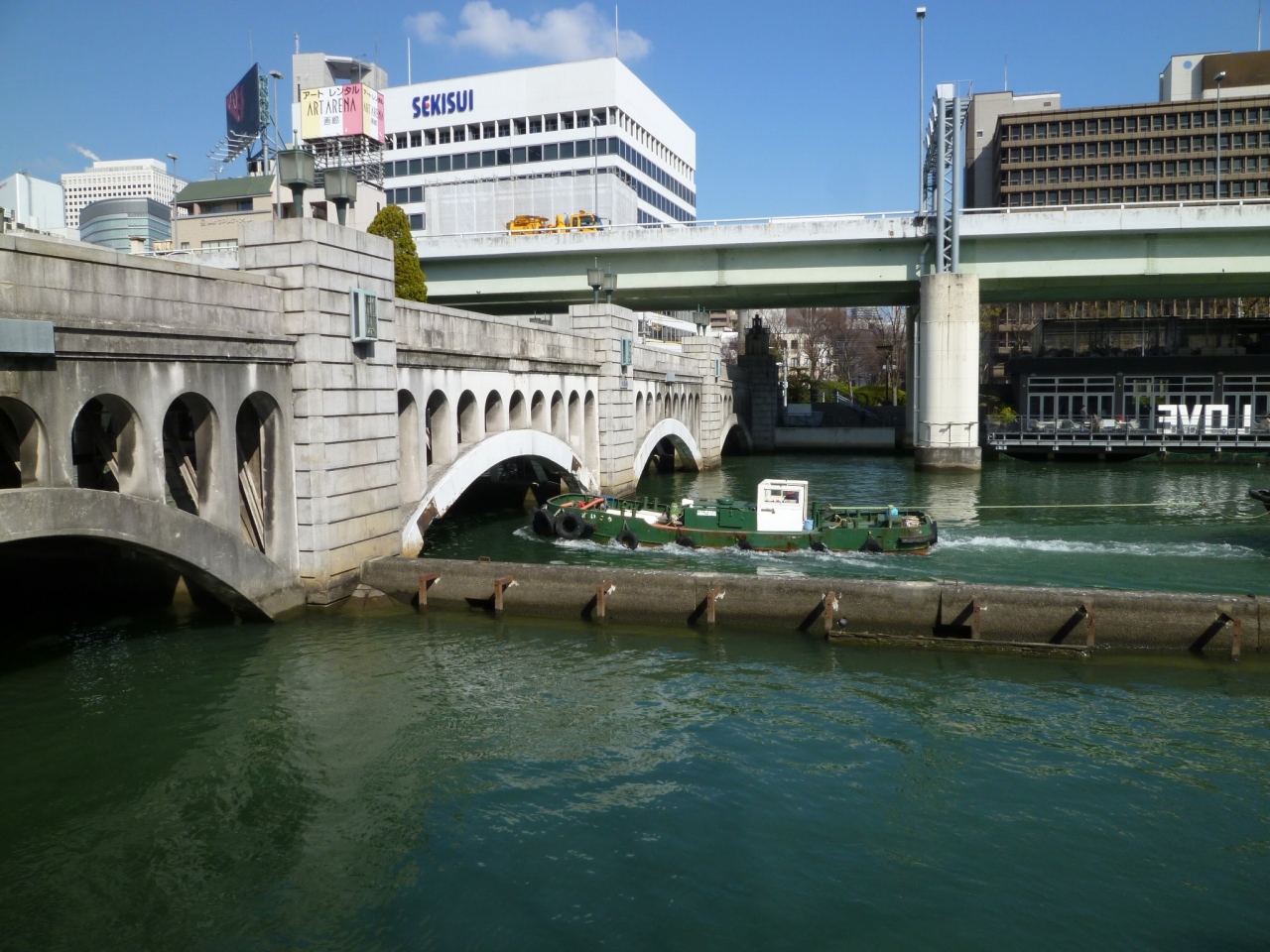 堂島川に架かる橋。アーチが印象的ですがそのアーチをくぐる船はなかなか苦労されているようでした。大坂はさすが水の都、印象的な橋が多いですね。一度橋だけを目的に旅をしてみるのも悪くない、と来るたびに思います。