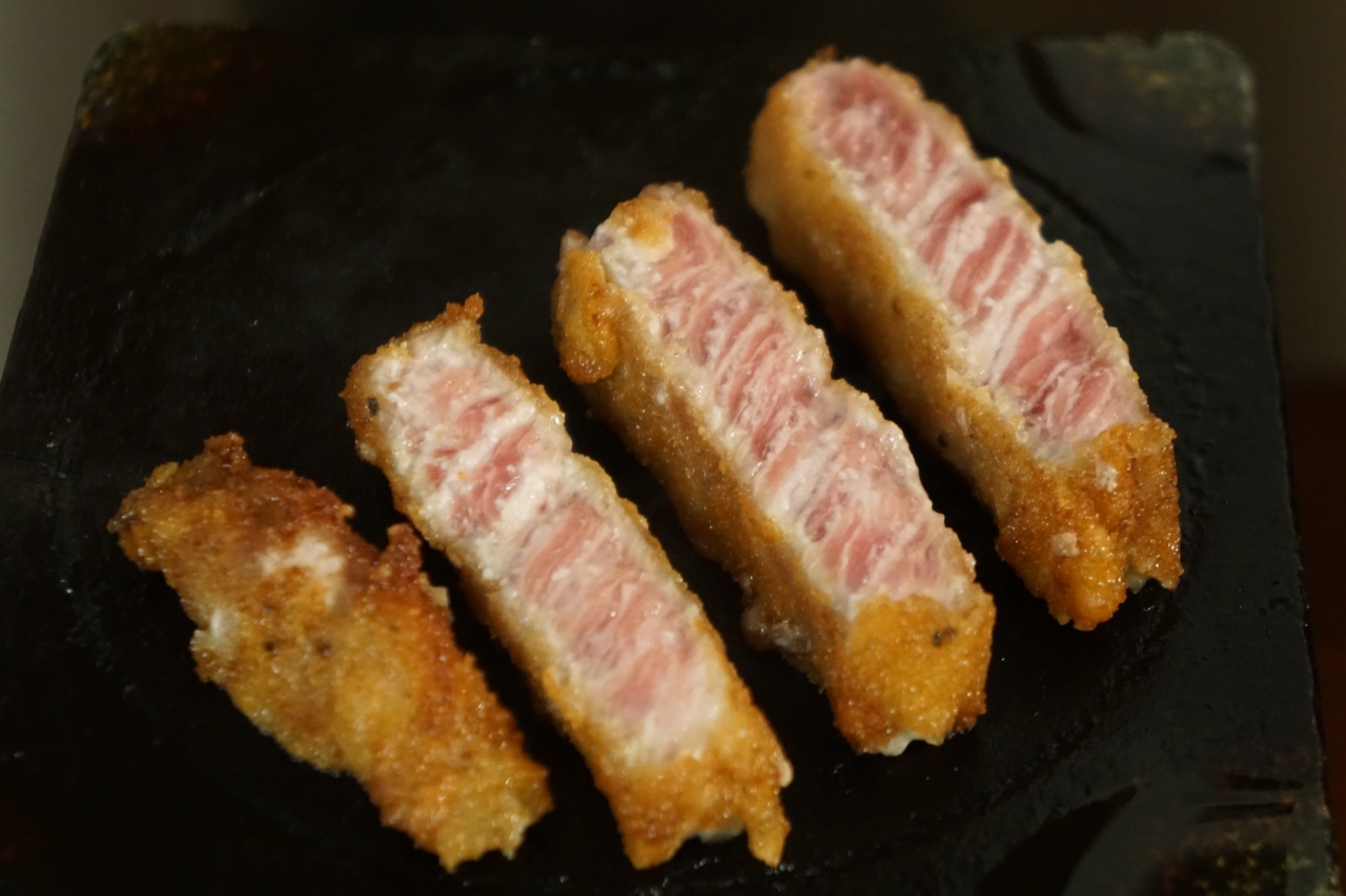 牛かつ 壱弐参は、回転がいいのかと思ったら、結局、1時間くらい並んで入店。牛カツといっても、肉はほとんど生の状態。それを改めて石の上で焼いて食べるんですね。これは時間がかかります。味噌味みたいな衣の味と差しがしっかり入った牛の組み合わせがうまいと言えばうまいんですが、この手間のかけたことに見合っているかというとちょっとどうでしょう。ちょっと面倒くさいと感じる人も少なくないように思います。