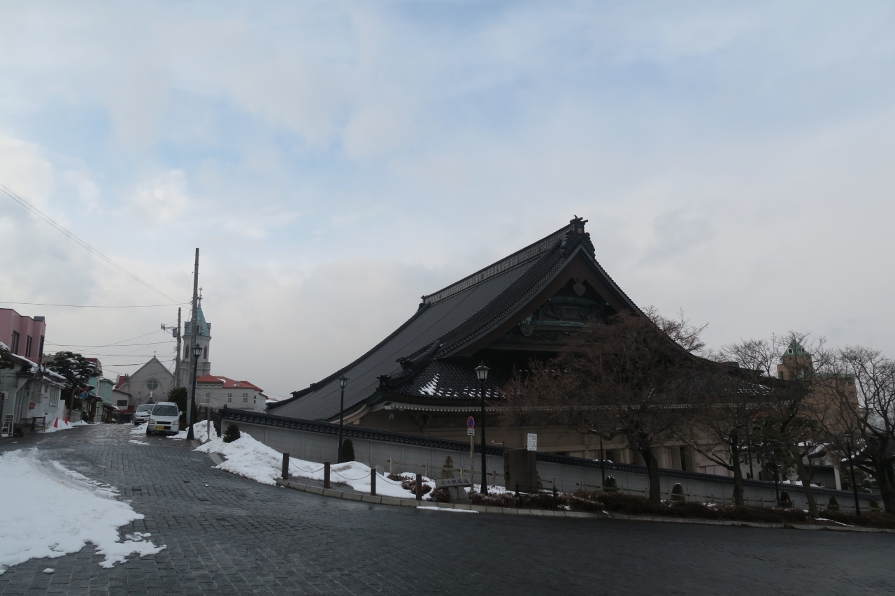 道幅が20間(36メートル)あることからこの名前がついているそうです。道幅が広いので、見晴らしが良く、八幡坂からの景色に負けない港町・函館らしい景色が眺望できます。ヒートロード方式の融雪処理がされているため、道路に雪が残っていませんでした。
