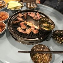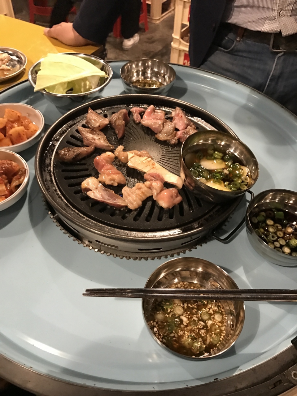 ソウルの有名なドラム缶焼肉のお店と名前 が 似ているので聞いてみると、社長同士が知り合いとか。ソウルと違いお肉の種類が色々とあり 、椅子も使ってもいいとのことで 、ゆっくり 出来ました 。甘めのタレがソウルのと似ていて、美味しかったです。