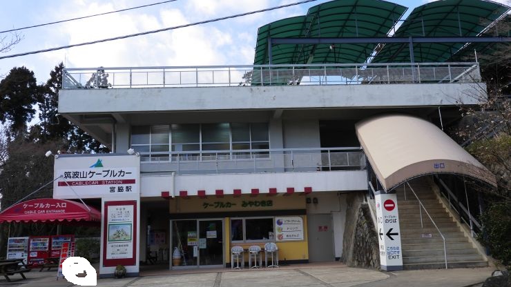 筑波山頂へのアクセスルートの一つ。もう一つのロープウェイ乗り場の手前に位置しており、片道ずつ利用するのがよい。こちらは麓に筑波山神社があり乗り場も神社脇にある。ケーブルカーで山頂に向かうと、コマ展望台をはじめとする眺望の良い場所に着く。そこから男体山山頂までは約10分ほど。ロープウェイ乗り場と比べると麓には飲食店や土産物屋が多い印象。往路で利用するか復路で利用するかよく検討したい。なお、1月下旬に運休期間がある。