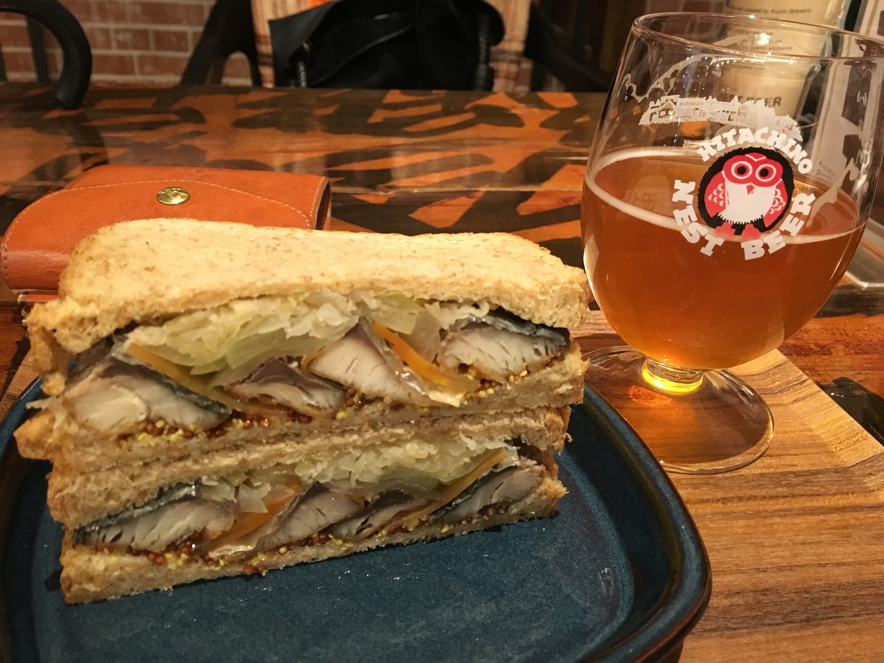 万世橋のおしゃれスポットの一つ、常陸野ブルーイングラボ。ラボ、と名前がつく通り、何種類かのポップをかぎ比べられたりします。テラス席がお気に入りです。フードはサバサンドがオススメ!秋葉での休憩によく使わせてもらってます。