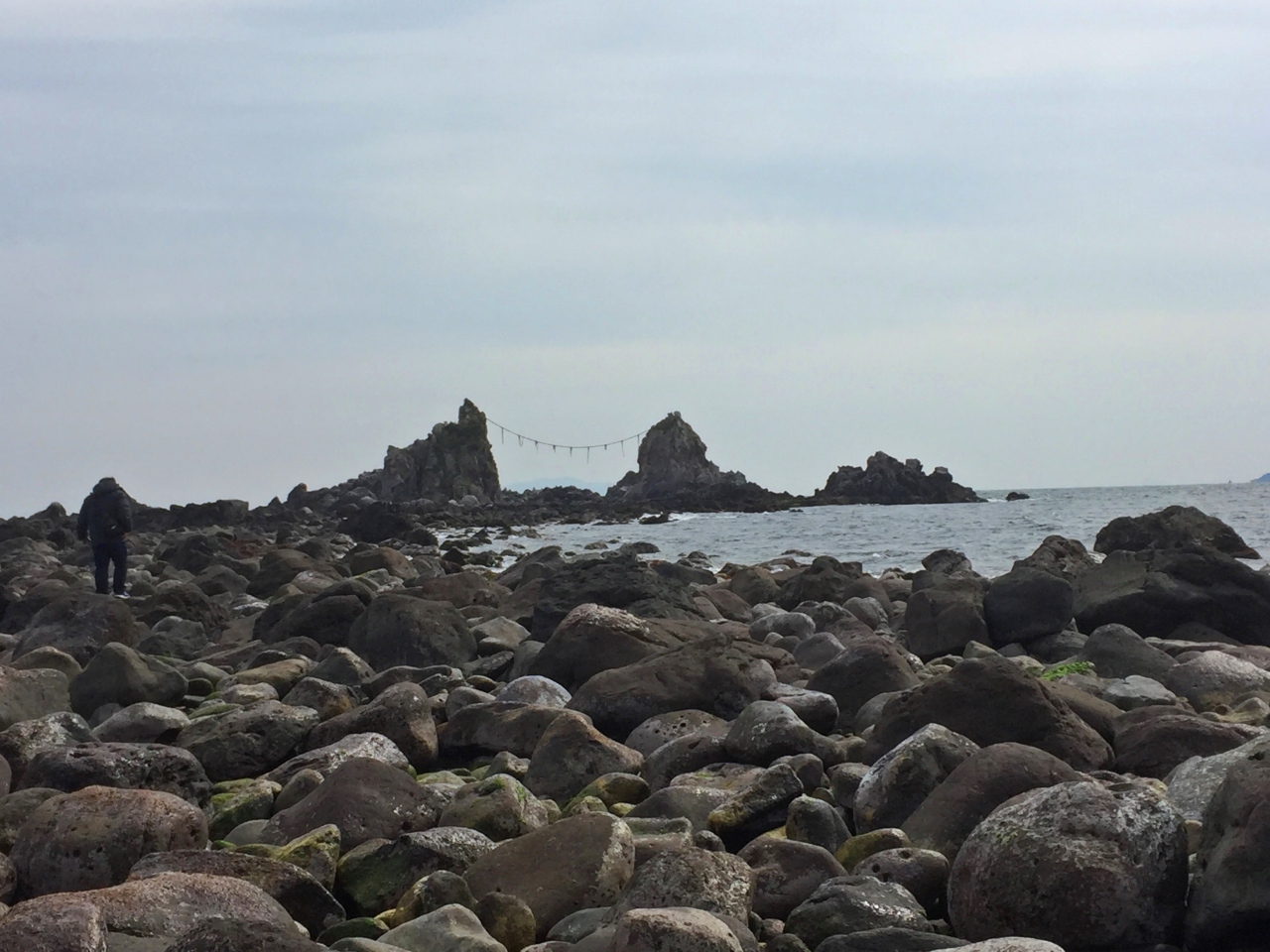 この様な疑似砂を見ることのできるのが岩海岸の特徴で、硬い岩と波が、疑似砂を作り上げているとのことです。