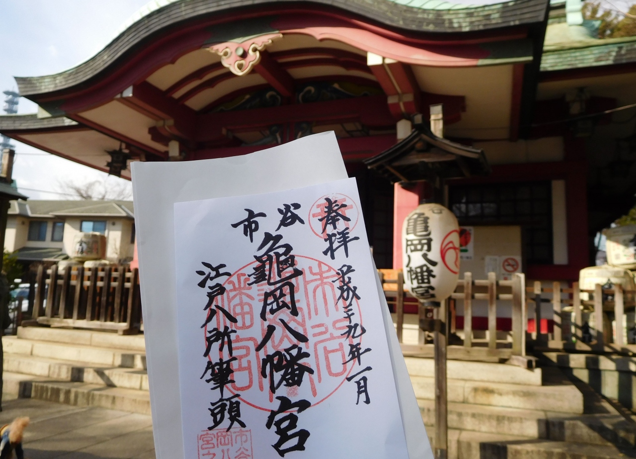 ペット用のお守りには、神社の名前の亀に因んで、亀甲柄の中に金糸で肉球の絵柄が織り込まれた基本形のものや、首輪に付けられる防水タイプの百守鈴、バンダナ型、飼い主とペットの名前を入れられる木彫りの札守りなどがあって充実しています。