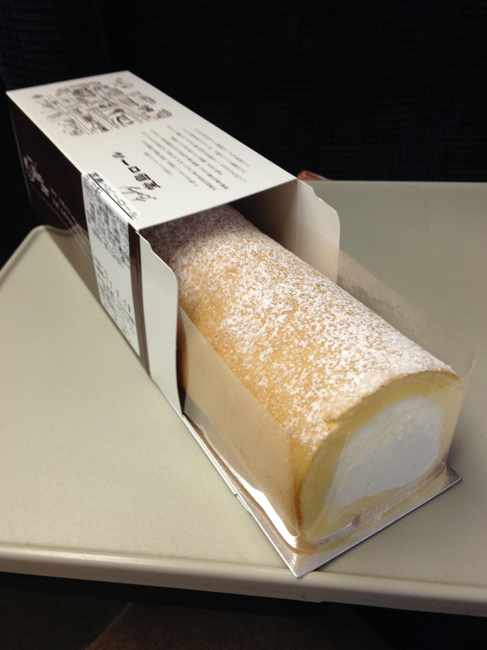 お土産を買うために大丸のデザートコーナーを回っていた時に、入り口付近にある堂島ロールで有名なベビーモンシェールがあり、¥500のミニロールを購入。堂島ロールより細まきですが、クリームなどは堂島ロールとかわらないもので値段も手ごろだったのでよかったです