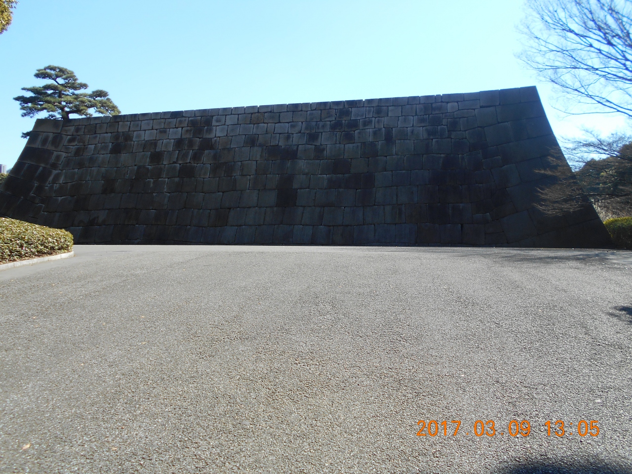 北桔橋門のすぐ近くにある石垣が 天守台の石垣です。上に登って景色を楽しむこともできて 皇居の本丸跡が見渡せます。この上に天守閣が立っていて そこから本丸を含めた江戸城の様子を 見渡せる場所でもありました。 思ったより面積は広くはありません。