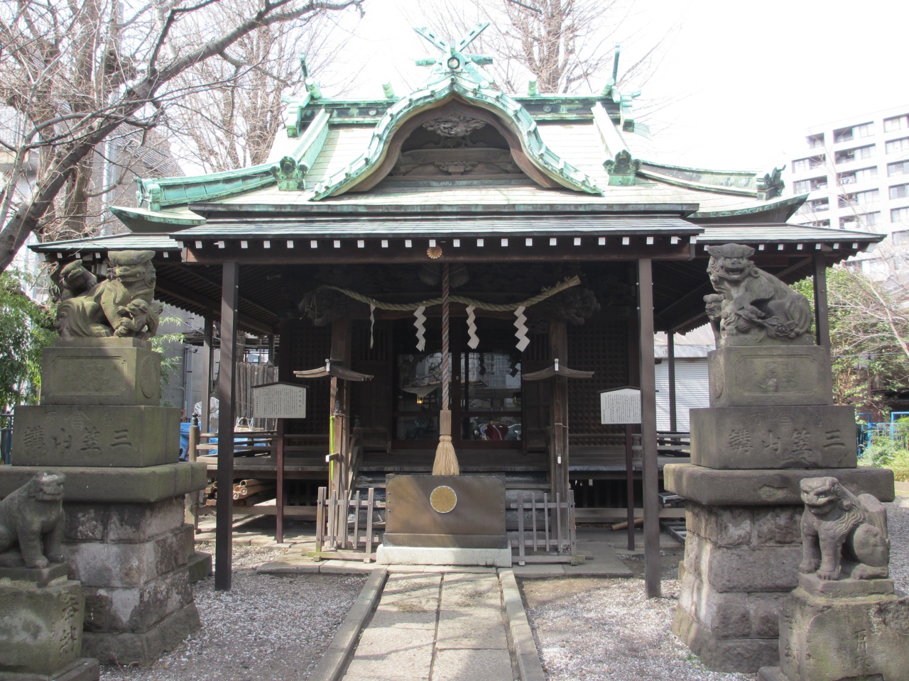目黒川近くの品川宿南側住宅街にある神社です。本殿の奥二重扉の内側にこて絵の名工伊豆長七のこて絵があるので有名です。ただし本殿内は暗くこて絵は見えず残念でした。狛犬が3対あります。本殿前の大きな狛犬には仔犬二匹がそれぞれ親犬にじゃれているほのぼのした感じです。北にある荏原神社の狛犬も同様に仔犬がじゃれています。荏原神社と比べるとやや粗く強い印象です。中間にある古い狛犬は頭が平に潰れているように見えました。しながわ観光協会によるとかっぱ狛犬で頭の上に皿があると説明されていますが、皿に見えなかったです。珍しいかっぱ狛犬に興味のある方は訪れてはいかがでしょうか。
