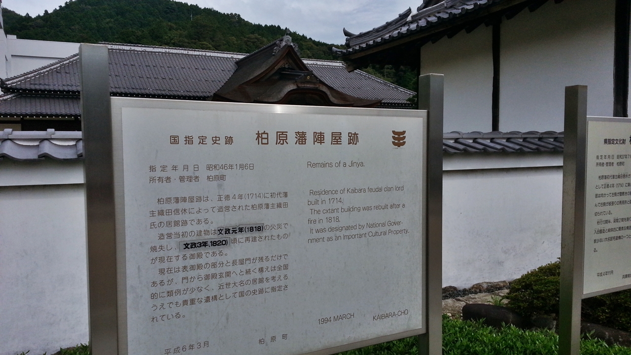 指定文化財・柏原藩の藩邸跡。番所がある長屋門と表御殿が残っていて立派な遺構です。明治18年まで小学校として使われていたそうで、お隣には崇広小学校があります。道路の向かいには歴史民俗資料館と田ステ女さんや織田信包さんの像が建っていました。