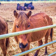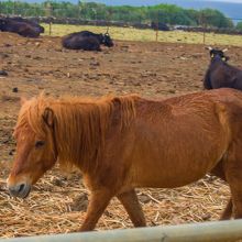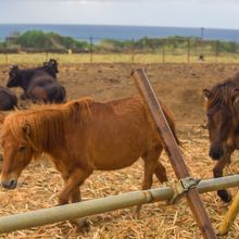 宮古馬牧場へ 行って 宮古牛とともに 放牧されている