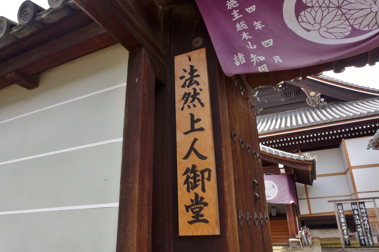現在、知恩院の御影堂は修理中です。工事の期間だけ御尊像をおまつりする集会堂を「法然上人御堂」と呼ぶようです。