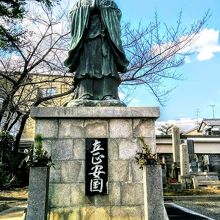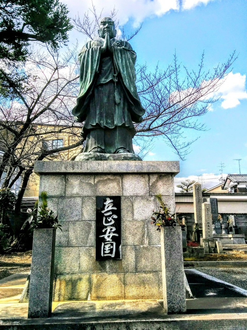 境内には山門をくぐった左手に巨大な「立正安国像」がありました。