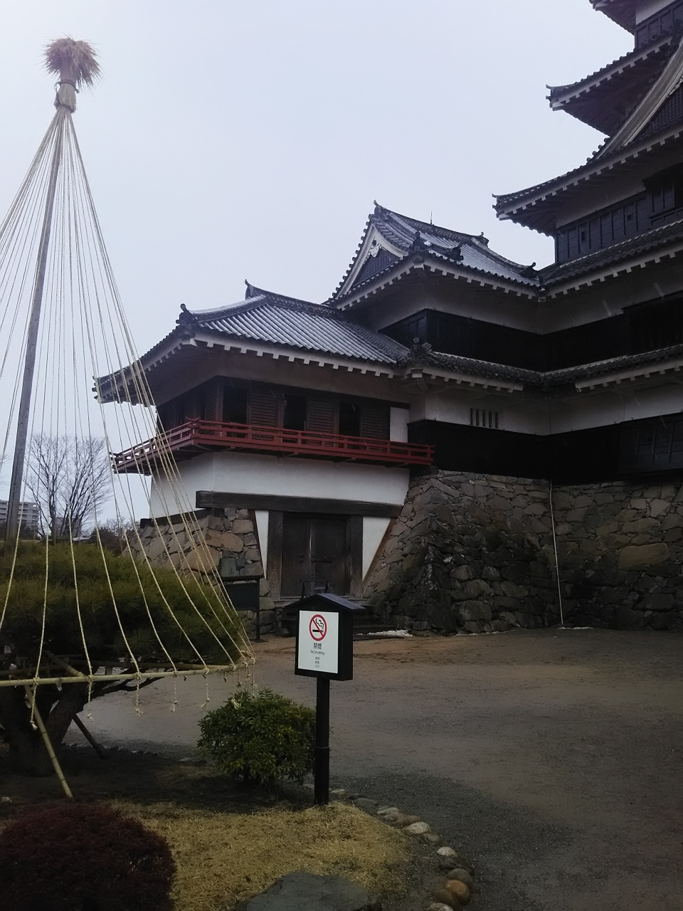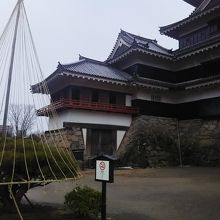松本城の天守のひとつです。大天守と月見櫓が、他にあります。乾小天守には角柱とともに丸太柱が使われています。なかにはいると印象がずいぶん違います。、北にあり、北は、叛く(そむく)、敗れるなどの意味があり、天守を構えていたそうです。