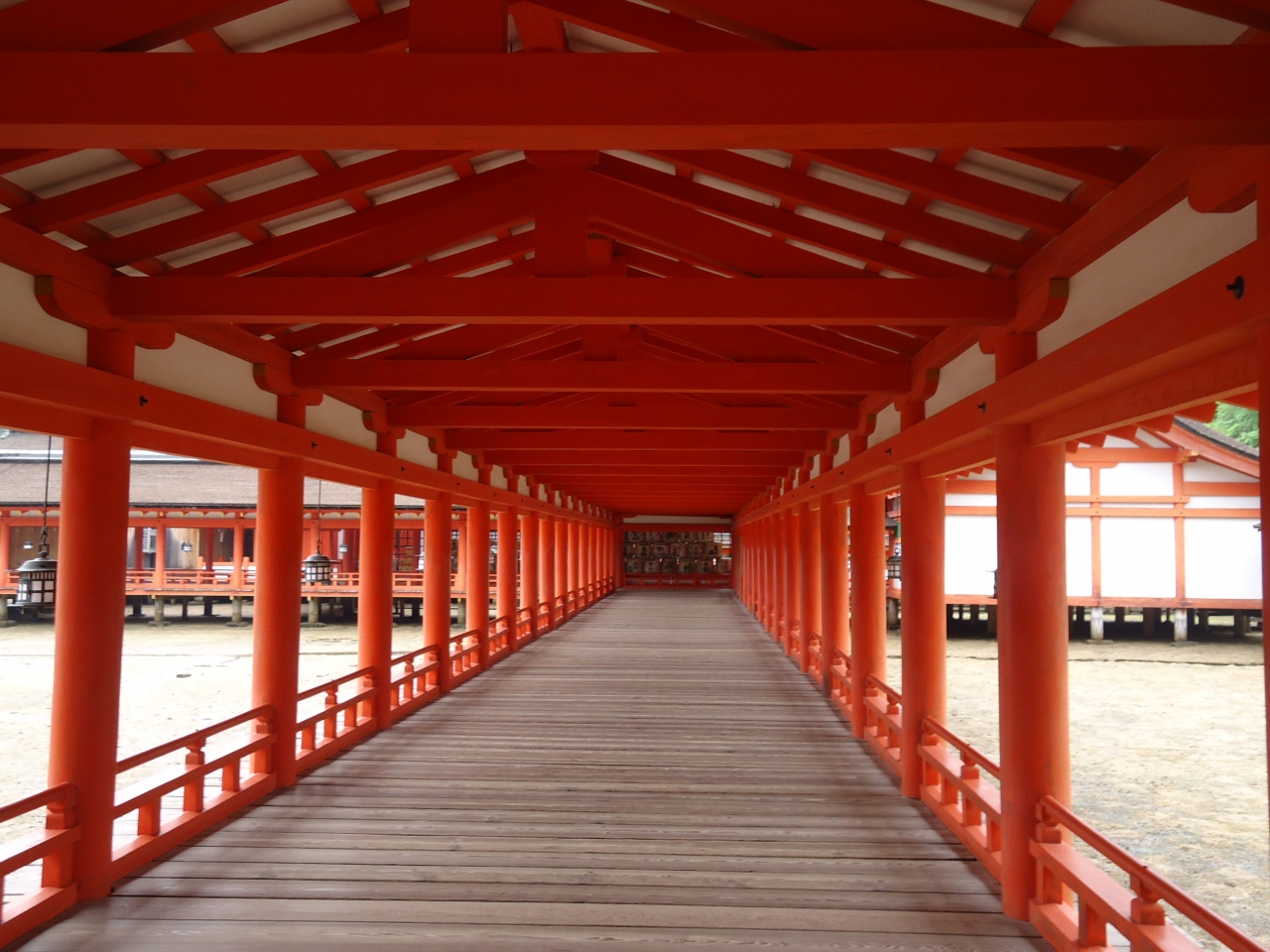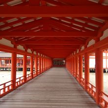 まず入口を入ると東側の廻廊となりますが、東の入口は切妻造りで屋根は檜皮葺、西側の廻廊の先の出口は唐破風造りとなっていで東西で違っています。廻廊は幅が4mで全長262mもあります。この廻廊は一方通行となっていますが私は朝に行ったのでまだ人は少なくて廻廊もゆっくり見ることができました。