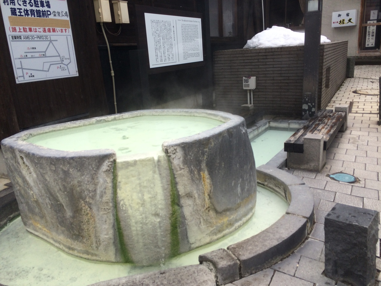 日本最古とも言われる蔵王温泉には上湯、下湯、川原湯という3つの共同浴場があります。どれも強酸性の硫黄泉です。 皮膚の殺菌作用があり、美肌の湯として知られています。営業時間は朝6:00から夜22:00まで。入浴料金は大人200円(小人半額)で、施設入口にある料金箱に入れてかり入ります。上湯と下湯の源泉は同じで、川原湯のみ別源泉です。上湯と下湯はやや高温で、川原湯が若干、ぬるめに感じました。浴槽のみで、洗い場やシャワーはありません。
