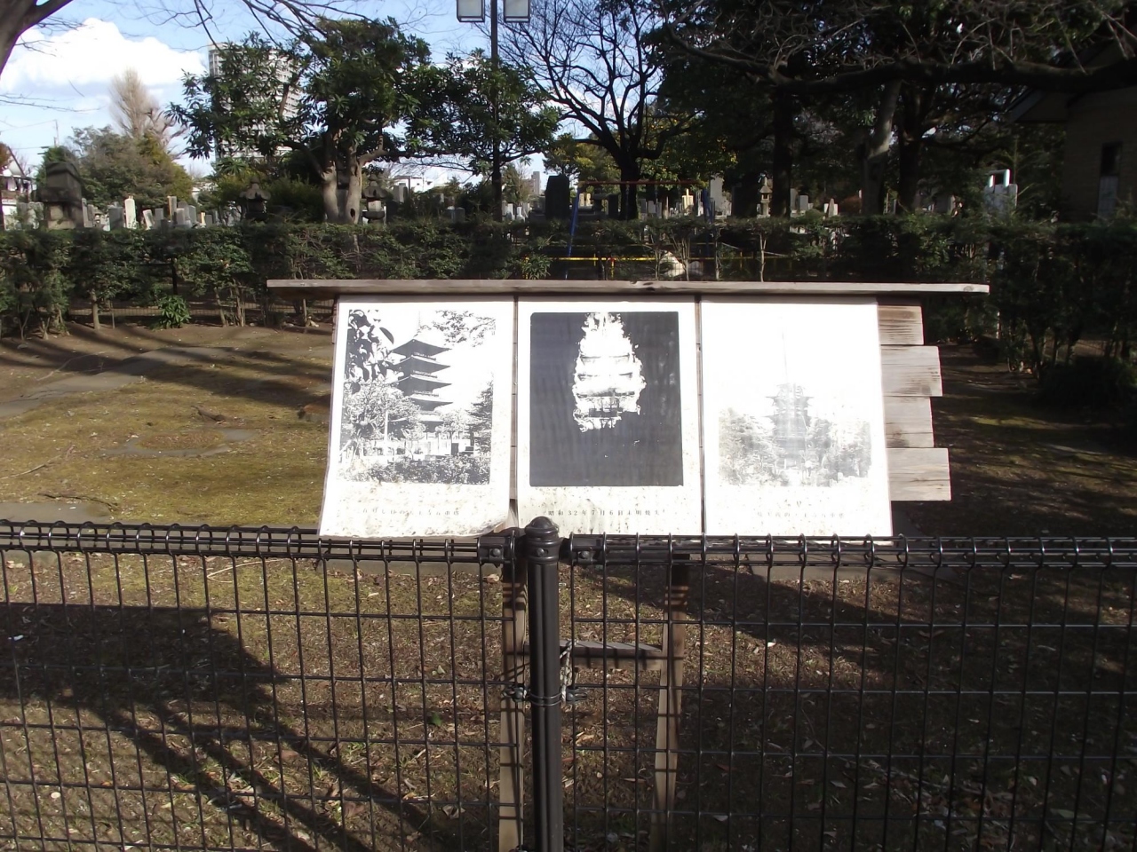 - 写真や説明板などもあるので当時の五重塔を想像できます