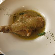 その名の通り、タイ風のグリーンカレーに、骨付きの鶏モモ肉が、丸ごと入った状態で提供される。