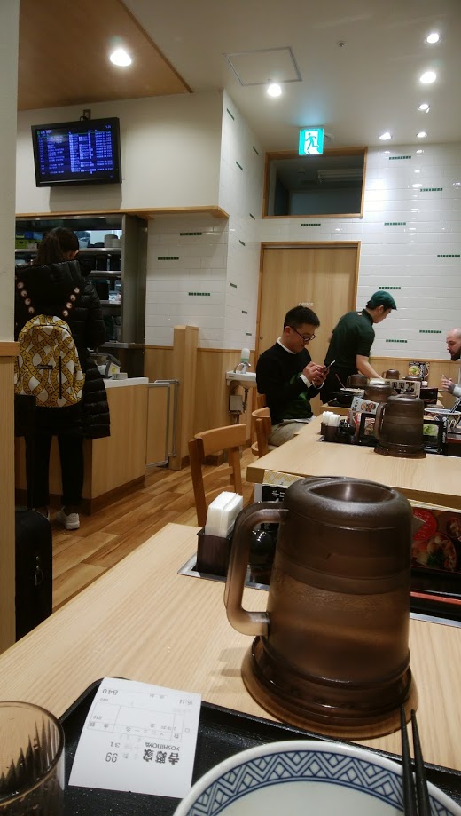 早朝6時台の国際線の便だったので、朝食を空港で食べようと思い、非制限区域の江戸小路をぶらぶらしましたが開いているお店は数店だけで、その一つであったここに入りました。日本人には知らない人がいない吉野家ですので、定番メニューの牛丼の味は安定しておいしかったです。開いているお店が少ないことだけでなく、価格が安いこともあってか自分たちが食事を終えると朝の5時台前半でしたが、ウェイティングが出来ていました。お値段は空港価格になっていて、街中のお店より牛丼並盛が40円高かったです。それでも420円で、空港の他の飲食店よりはかなり安いですが。
