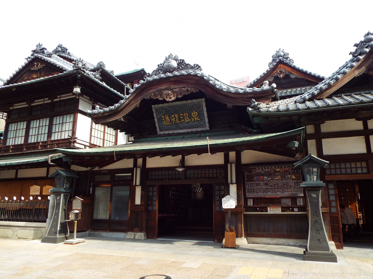 三階の個室が使える霊の湯のチケットを1550円で買い、中に入りました。細い急な階段と廊下を渡り三階に進みます。継ぎ足し建てられたのか内部は少々複雑ですが、要所要所に案内の人が立ち、誘導してくれるので迷うことはありません。このチケットで「霊の湯」と「神の湯」に入れます。湯船も洗い場もかなり狭く、「のんびりと温泉を楽しむ」とはいきませんが、時代を肌で感じることができ満足でした。個室では浴衣が用意され、お茶と「坊っちゃん団子」で、しばし、くつろぐことができるのですが、1時間20分という時間制限は短く、のんびりはできません。漱石ゆかりの「坊ちゃんの間」や「皇室専用のお風呂やトイレ」なども見学しなくてはなりません。ちなみに、そのトイレは一度も使用されていないそうです。
