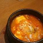 この日は、生姜風味のサムギョプサルとチゲのセットを注文。