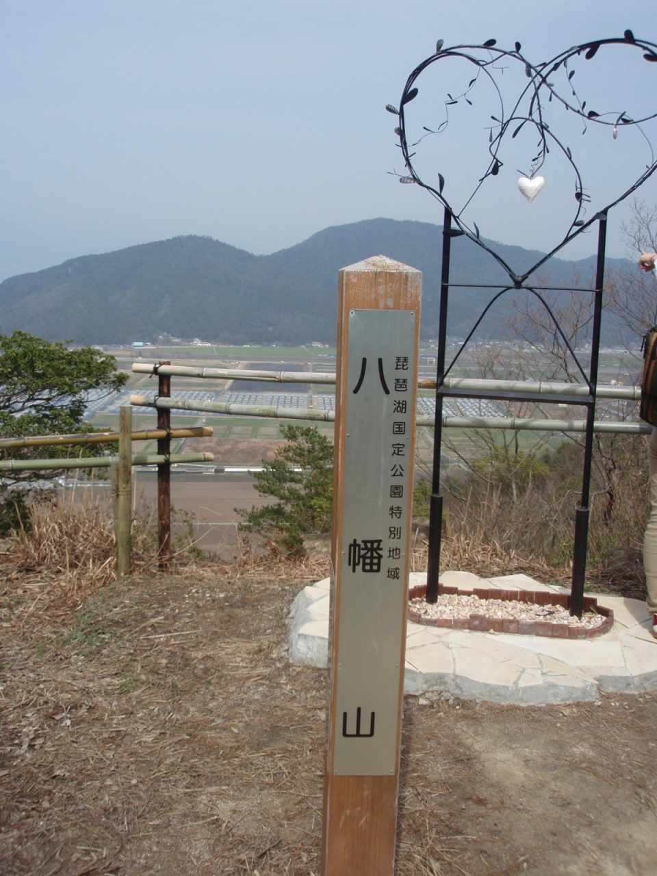 豊臣秀吉の甥秀次の居城(八幡山城址)に登りました。近江八幡街並み、日牟礼八幡宮経由1時間20分ほどで山頂に着きます。三角点は北の丸跡にありました。西の丸跡からは西が開け眼下に琵琶湖が見えます。もやっていなければ、もっと素晴らしい景色が見られるのでしょう。北の丸跡にはハート型、LOVEのオブジェがあり、恋人達の聖地なのでしょう。ここよりも高いところに古い立派な石垣があり、ここが本丸跡で、今は村雲瑞龍寺があります。残念ながら、遺構は石垣以外には見られませんでした。ロープウエイを使用すればもっと手軽にアクセスできます。私としては、ハイキングとしては物足らない、城址としてもあまり見るものが無い消化不良気味の旅でした。
