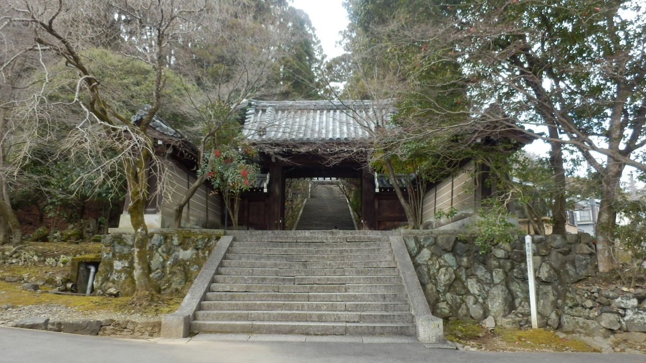 真言宗五智教団の京都本山、行基により創建され、御本尊は虚空蔵菩薩、なので嵯峨の虚空蔵さんと呼ばれ親しまれています、阪急電鉄嵐山駅からすぐ左折して直進、300Mほどで道路は右へ曲がるがそのまま直進200M先左が寺への入口、数え年十三歳の男女が行う十三詣りの寺としても知られています(十三詣りは知恵と福徳を授かるお参り)参考資料++道路脇に京都市が設置した立札(駒札)によると 月真院は臨済宗建仁寺派のお寺、豊臣秀吉の正室"ねね"で有名な高台寺の塔頭、幕末伊藤甲子太郎が光明天皇衛士を組織してその屯所を月真院に置いたとされている、