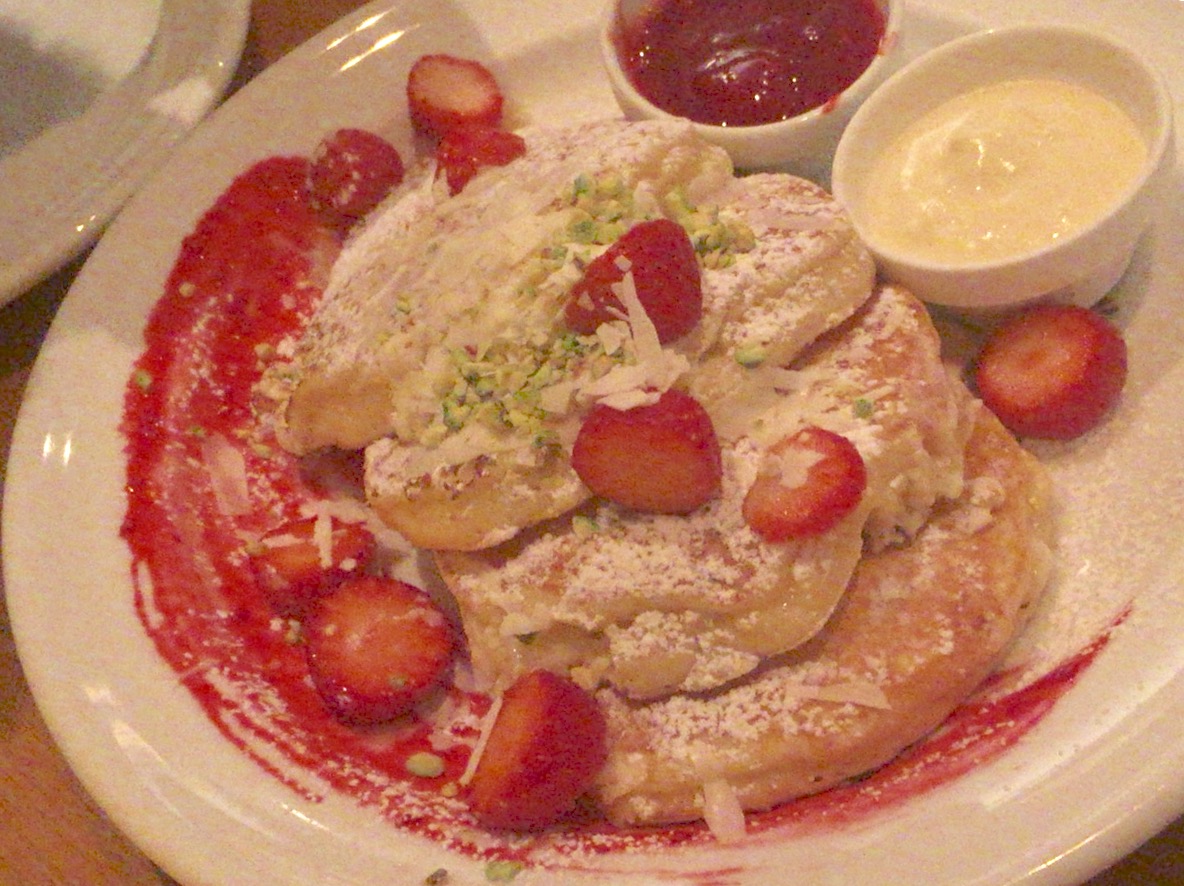 ホワイトデー限定の「ベリーホワイトチョコレートパンケーキ」をいただきましたが、ふわふわで、また味もしつこくなくぺろっと食べてしまいました。