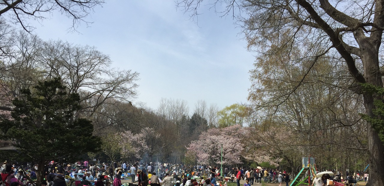 札幌は5月が花見のシーズンです。ジンギスカンをするために円山公園へ。沢山の人が楽しんでいます。空いているスペースがあると思いきやそこは火を使用できないエリアでした。いかれる方は確認して道具を広げましょう。トイレは簡易トイレが複数設置されていますがここも人でいっぱいでした。ゴミは分別がされていました。