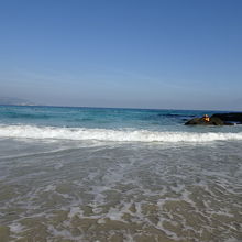 下田からだと白浜海岸を行きすぎてすぐの岩山の間に展望所があり、そこに10台くらい無料駐車ができます。ただし狭いので、出る時などぶつけないように注意が必要です。海岸まで坂を下りて3分。海の青さと砂の白さに感動しました。