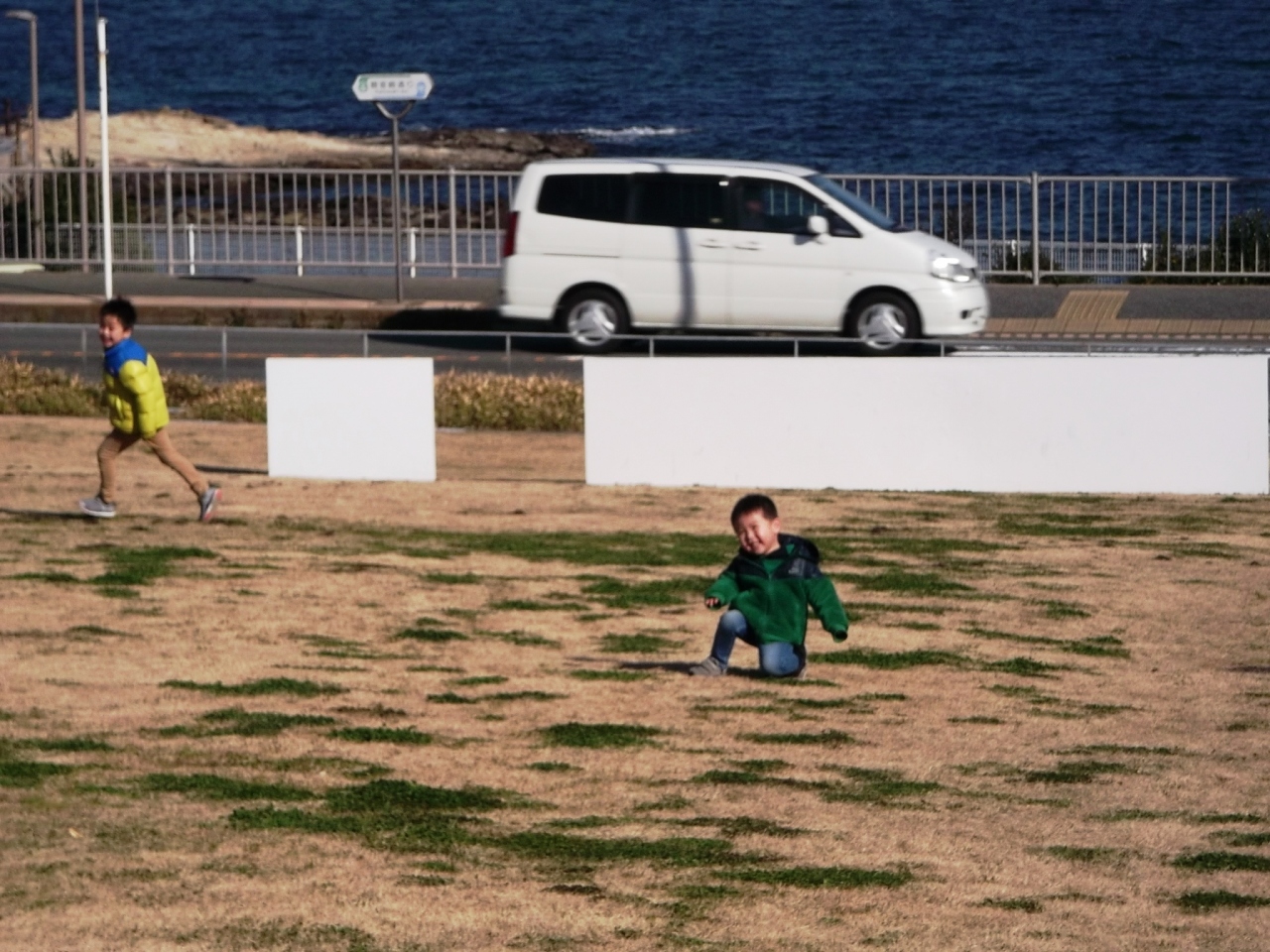 谷内六郎展をやっていたので入ってみました。懐かしい昔の風物が描かれた表紙を見て昔を思い出しました。一回りして外に出ると、屋上の広い芝生の原っぱからは東京湾の船が行き来するのが見え、のびのびした気持ちになり、前庭の芝生を子供たちが駆け巡り、これは春の花見時や夏にもいいなと思いました。辺りは、トレッキングのコースとして整備されているようで、時間があれば一日を過ごすこともできるスポットでした。