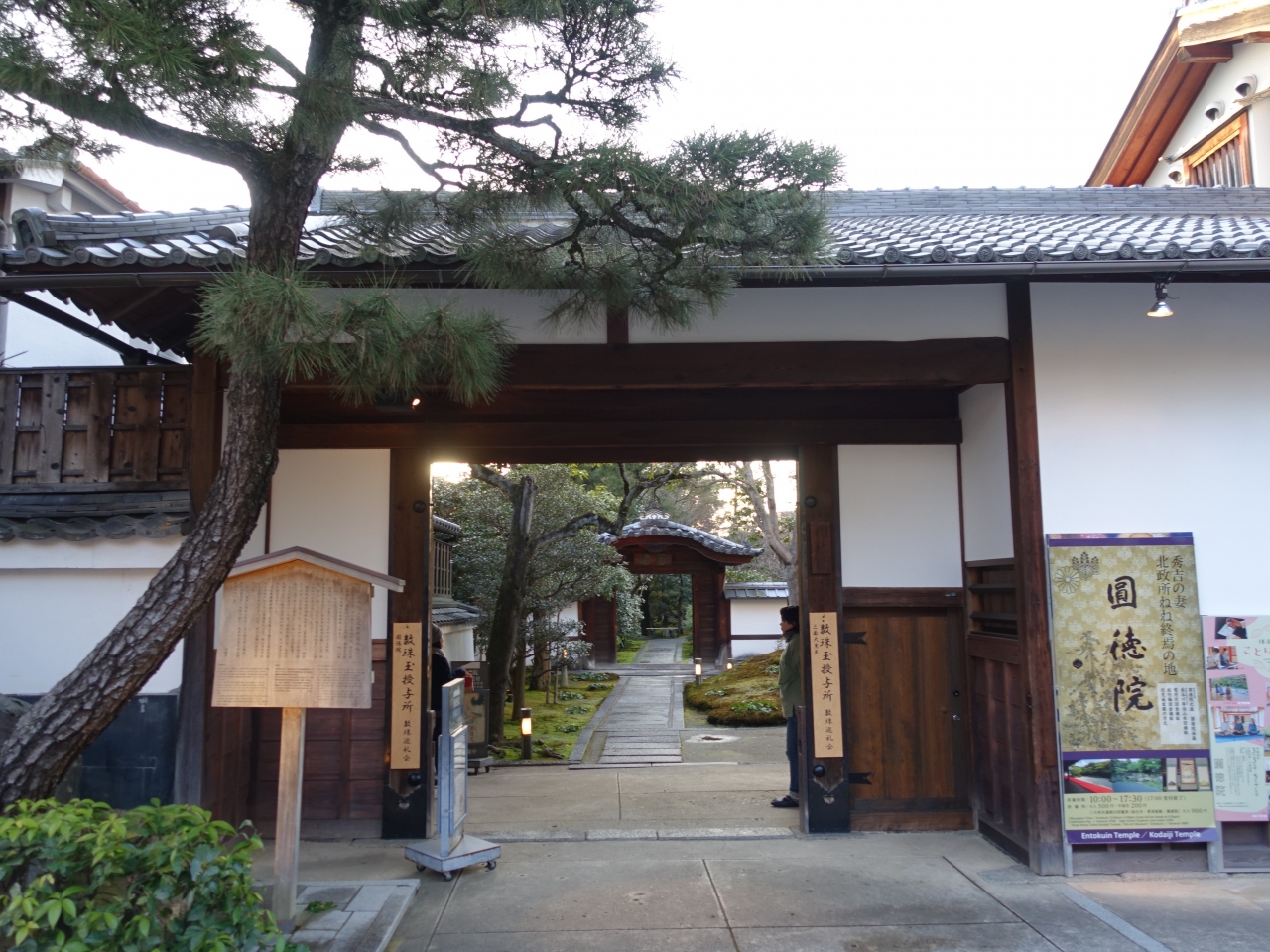 高台寺を見学した後、「ねねの道」を散策していると、通り沿いに「圓徳院」が現れました。このお寺は、ねねが晩年を過ごした場所で、「ねね終焉の地」とされています。