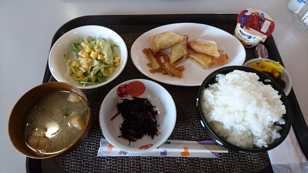 ランチは、メインディッシュを受け取ったら、後はセルフです。小鉢とサラダをピックアップしたら、ご飯と味噌汁は自分でよそうので、超大盛りも可能で、お腹一杯になりました。