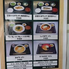 日替わりランチが2種類あり、どちらも500円。その他、常設メニューとして、ラーメンやカレーもあり、カレーライスはご飯の大盛りもお願いできます。