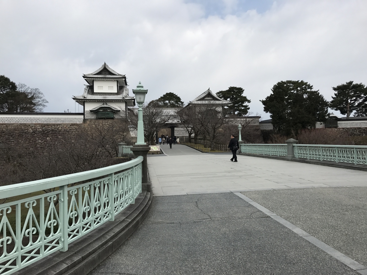 兼六園の入口と繋がっていて、今では金沢城のメインの入口になります。門や櫓が建ち並び、壮麗な雰囲気でした。中に入ると、武者だまりみたいなところがあり、右に曲がってまた門をくぐり中へと進みます。かつてはここが裏口というから驚きです。