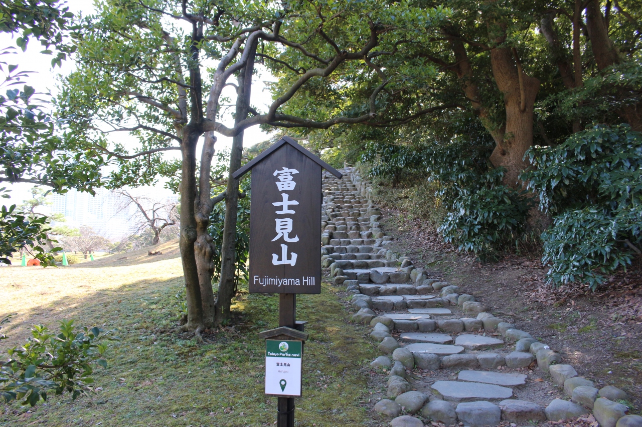 広大な浜離宮恩賜庭園の中にあり、富士山が見えるのかと、小高い丘を登ってみましたが、やはり富士山は見えませんでした。