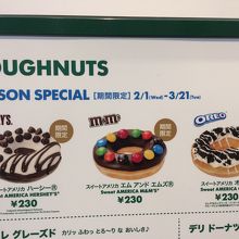甘いものが食べたくなり、オヤツタイムにクリスピークリームドーナツへ。コーヒー、ラテ、紅茶いずれかのドリンクとドーナツで50円引きになりお得です。頼んだ後にポスターを見ると期間限定でハーシーズ、m&m オレオとコラボした珍しいドーナツがある事が分かりました。それにすればよかった(泣) つぎチャレンジします。