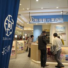 熱海駅駅ビル改札口西側にあるラスカ熱海の中、窓側に熱海駅観光案内所(コンシェルジュ)があります。美術館などのパンフレットが置かれ気軽に観光情報を収集できます。窓口にも案内係の人が二人おりますが、親切丁寧に案内してくれるからか、少し待たされるのにちょと難があります。観光案内所の前には椅子が沢山置かれているので休憩所としても大人気です。