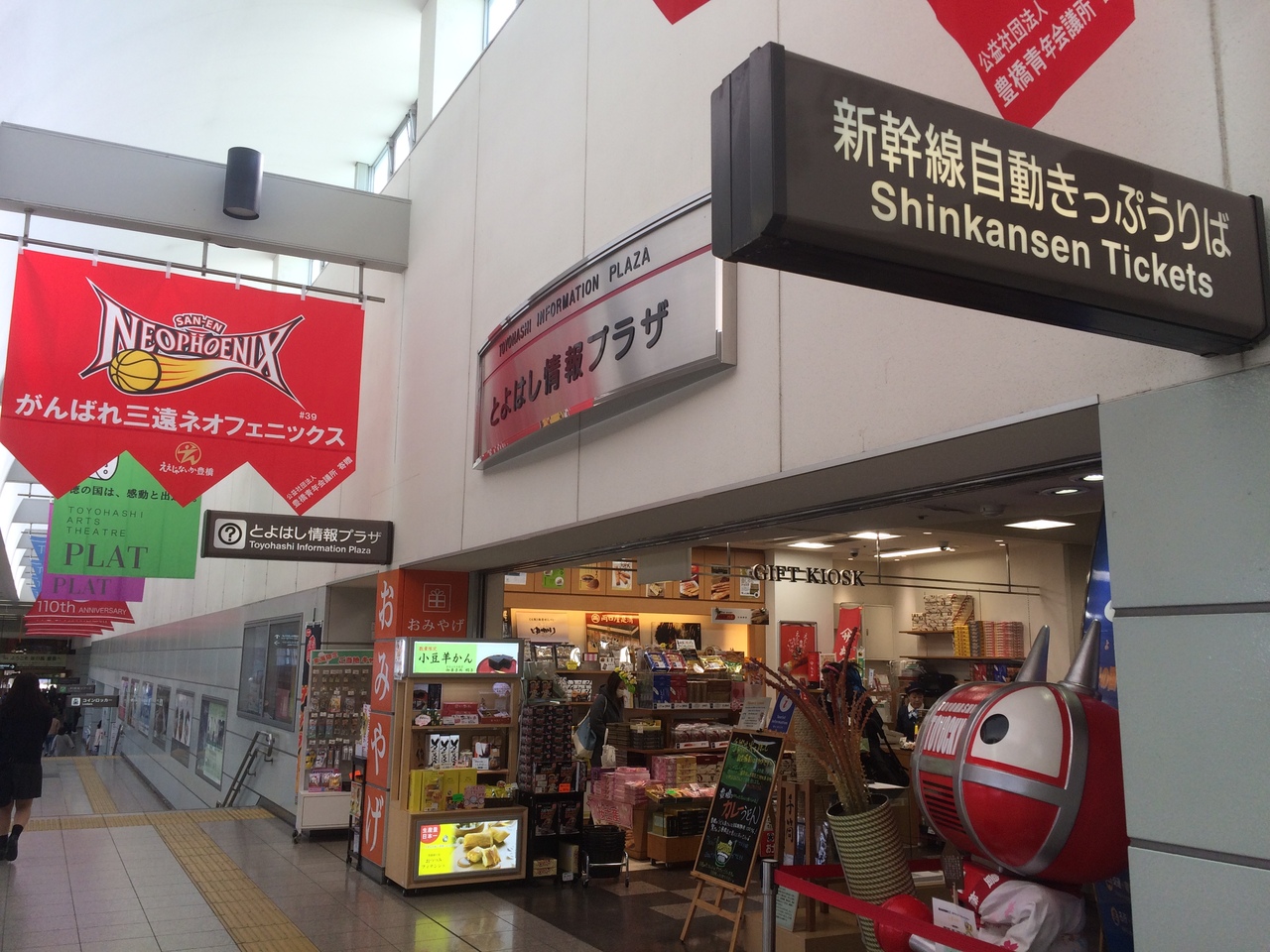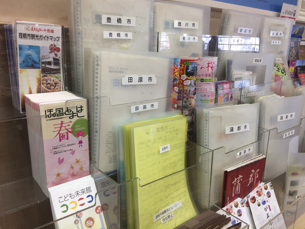新幹線改札口と東海道本線改札口の通路にあり同じ敷地内には小さな土産屋があります。周辺の観光マップが置いてあり案内人も一人いたので詳しく聞くことが出来ます。敷地内に椅子と丸テーブルがあり座って落ち着いて情報を得ることが出来ました。