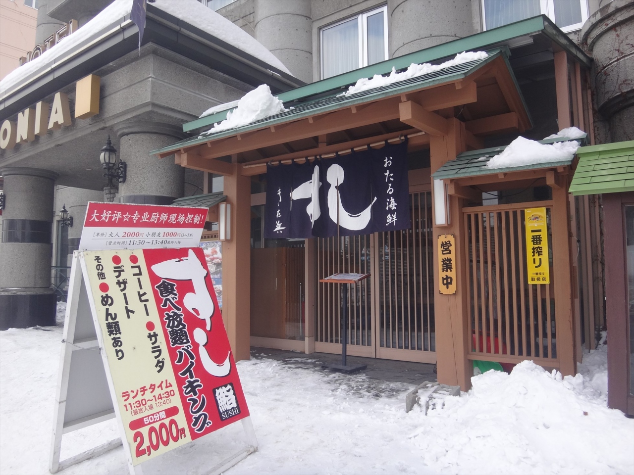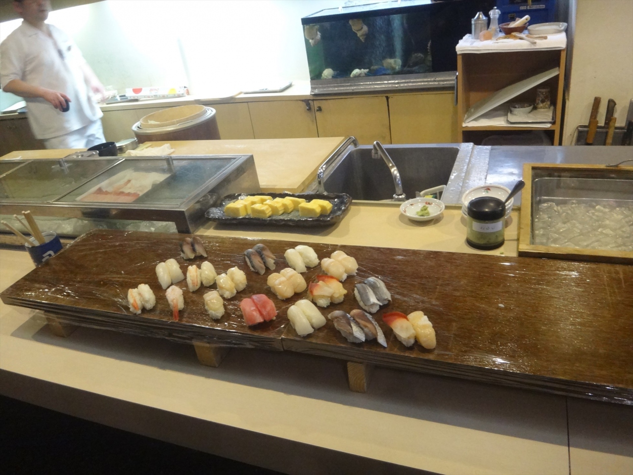 2000円で寿司が食べ放題というのは、それなりに魅力的な値段設定ではありますが、残念ながらネタの種類がちょっと少ないのと、味もかなり落ちてしまうので、観光客によいネタを提供した残り物を使っているのがすぐ分かります。そのせいで、コストパフォーマンスがいいとは言いづらいです。量だけ食べられればいいという人にはお勧めできます。
