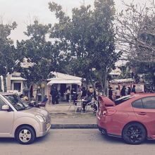 お店の前にはテーブルと椅子がセッティングされてて、人が多い。