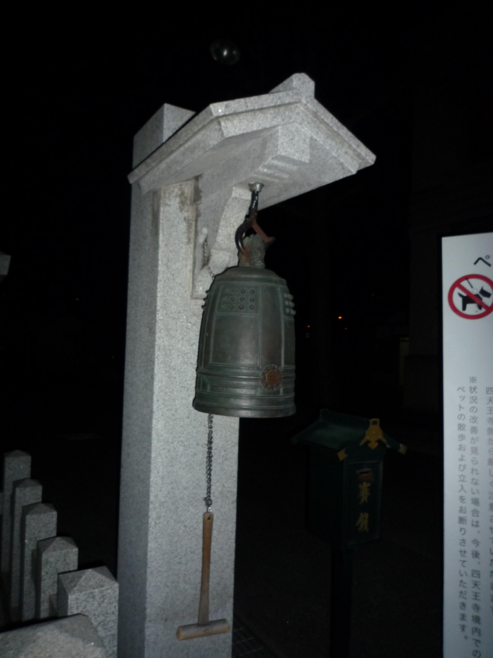 石の鳥居をくぐって、四天王寺学園の向かいにあるまだ新しい鐘です。