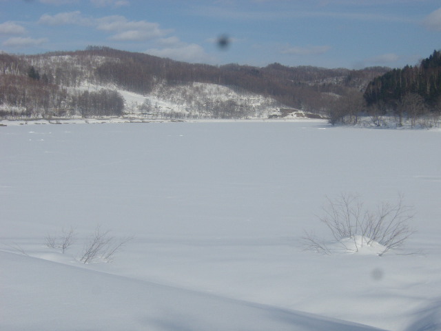 旭川から北に約50キロ、道北の剣淵町にある小さな湖で、オンシーズンは湖岸を一周するサイクリングなどがお勧めですが、雪景色を楽しむ、という意味では案外春先が良かったりします。厳冬期はこの湖はワカサギ釣りで有名なため、意外と釣り客のテントなどで賑わうことがあり、却って白一色の雪原の湖面を楽しむ、という意味では3月のご訪問をお勧め致します。