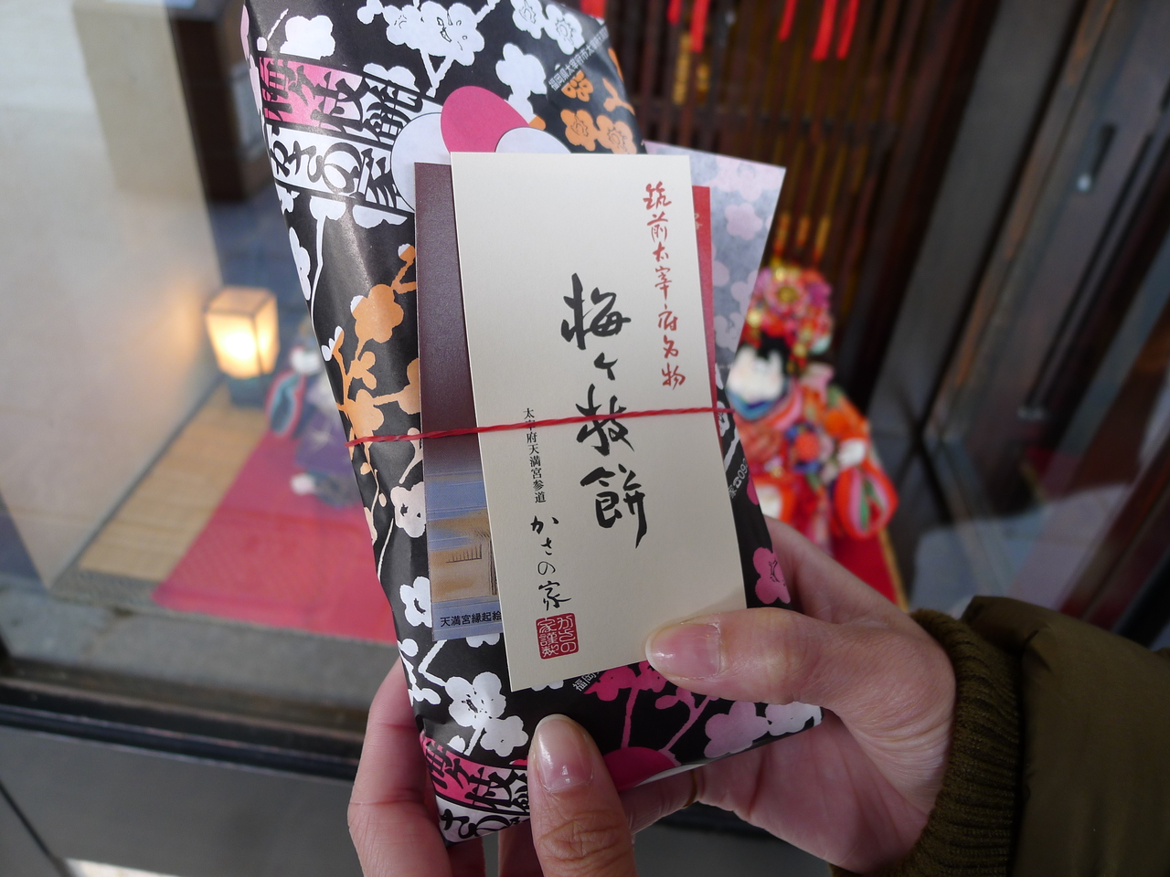 参道に並んでいる梅ヶ枝餅屋さんの中でも一番列ができていたのでこちらで購入しました。できたての梅ヶ枝餅は美味しく、食べ歩きしながら周辺を散策しました。ちなみに天神から太宰府を往復する方は西鉄天神駅で売っている太宰府往復きっぷ+梅ヶ枝餅引換券がセットになっているものがお得でオススメです。わたしは引換券を使ってこちらで梅ヶ枝餅4つと引き換えしました。