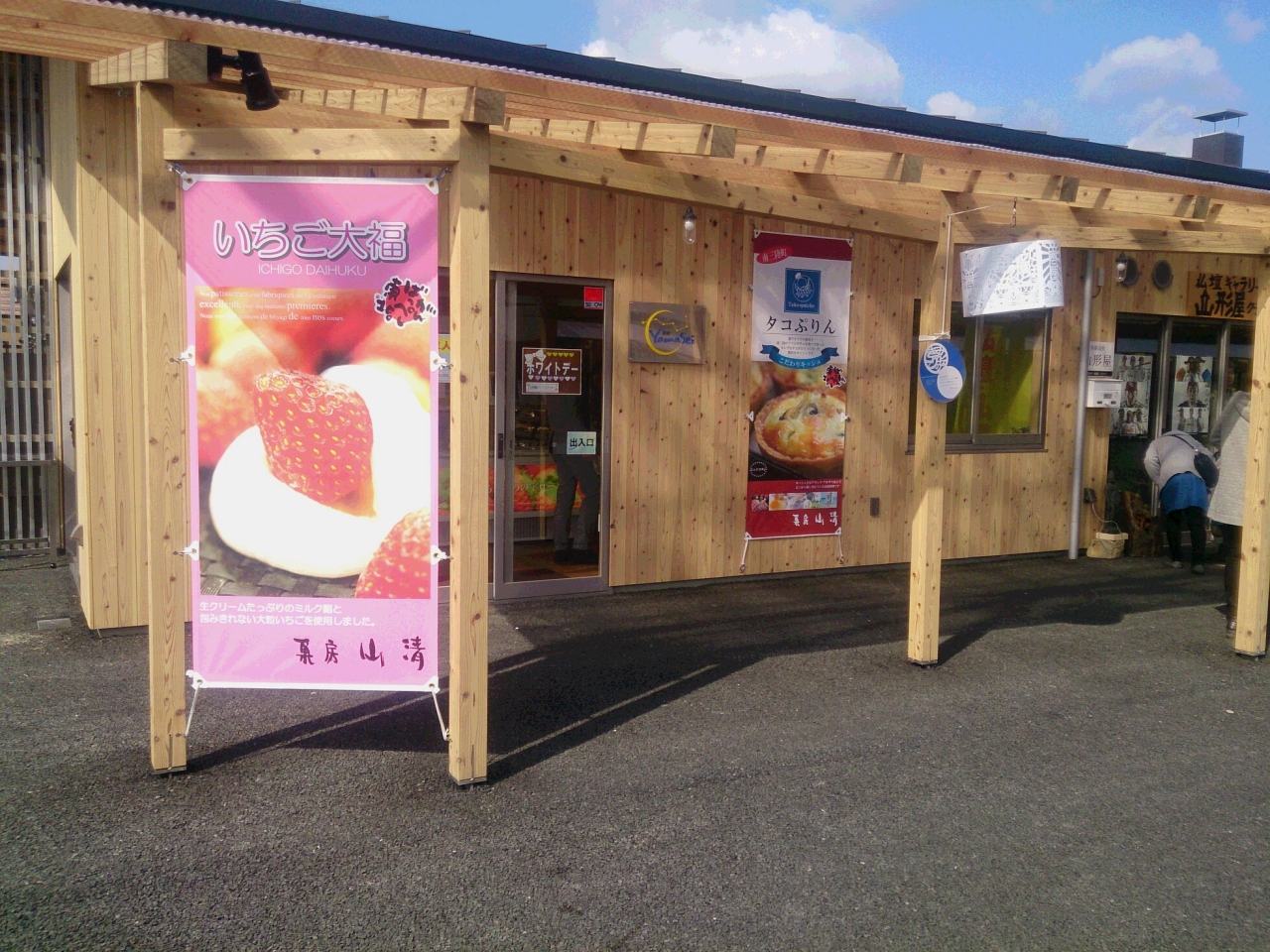 南三陸町の老舗の菓子店でしたが、津波の被害で店舗が流されてしまいました。その後、プレハブの商店街で復活したのですが、今月、高台に商店街ができ、新たなスタートを切りました。お店は、広々として買い物がしやすいです。そして、あの山清名物「タコぷりん」が店内でいただけるようになっていました。温めていただく、「タコぷりん」がその場でいただけるなんて、最高です。お店で「タコぷりん」をいただき、この季節には。欠かせない「いちご大福」を買い、とても幸せな気分になりました。