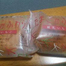 オーソドックスなクリームのものもありましたが、今回は季節限定のイチゴクリームのスフレを購入しました。