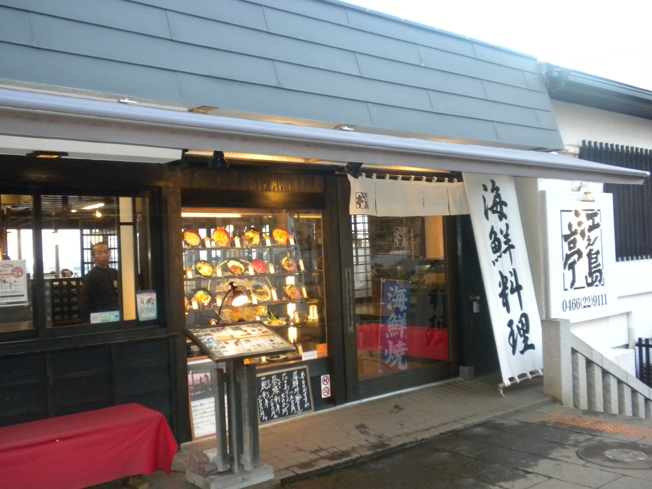 丁度、のどが渇いた頃に現れる「江之島亭」の入口には御主人?が立って呼び込みをしています。